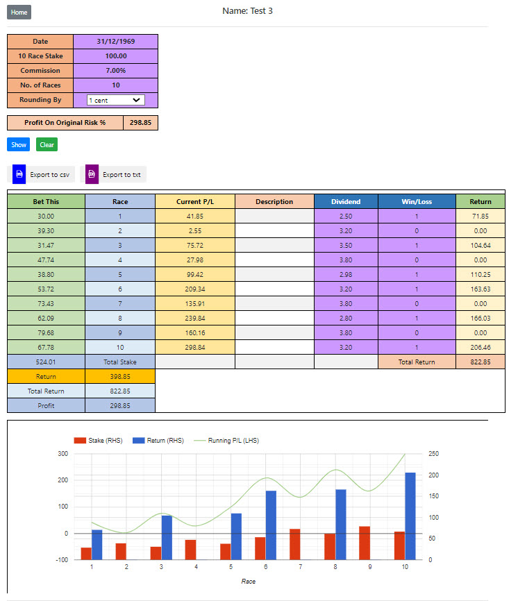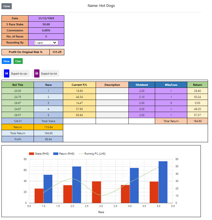 It auto calculates the next outlay after you input the dividend following the next race.