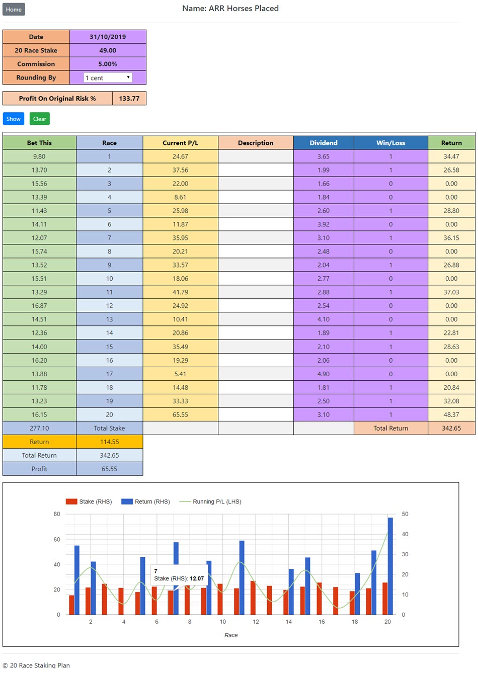 You can see we have entered 48.50 as our risk over the next 20 races/events, this is a rock solid commitment. (This is a 1 cent/pence unit)